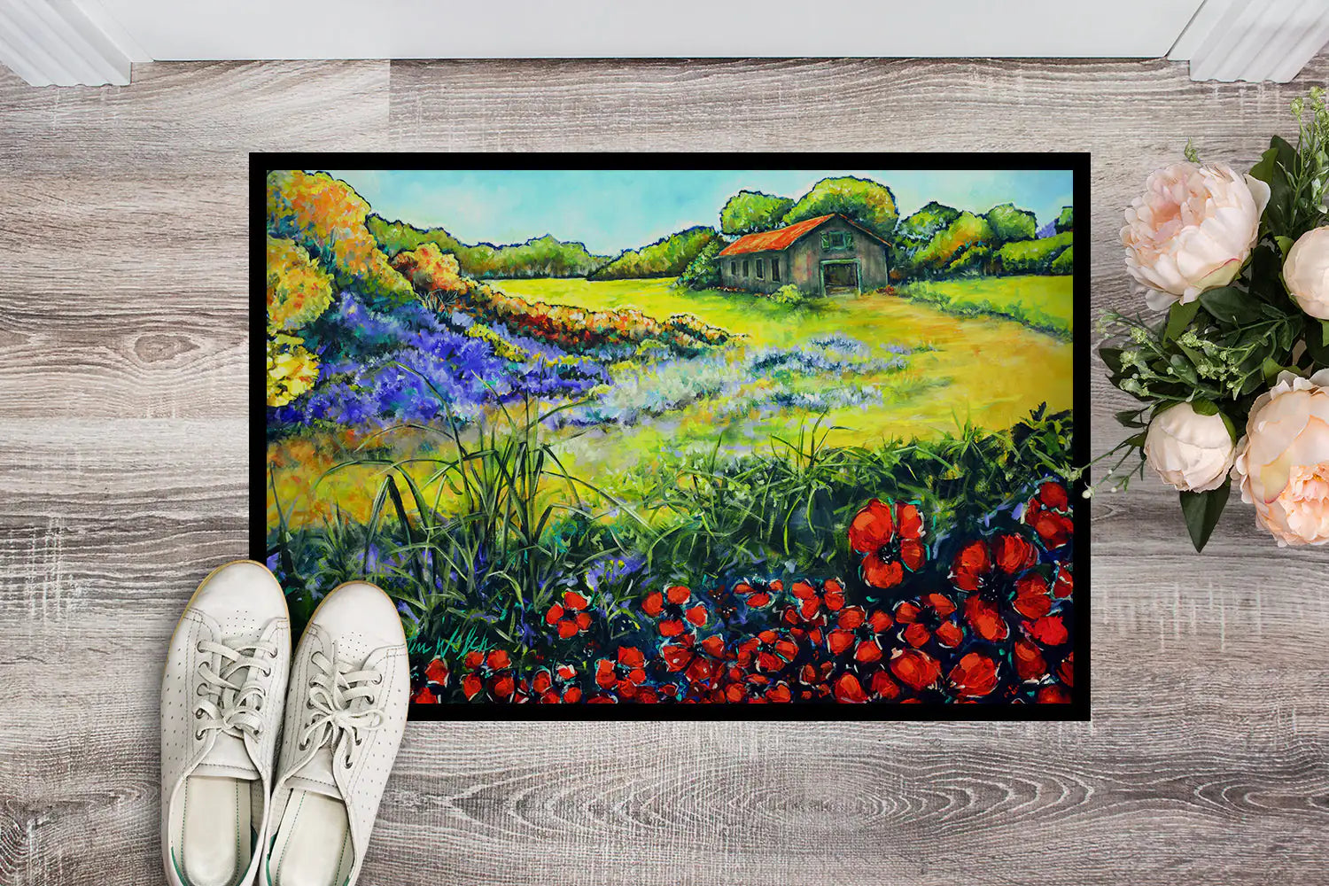 Welcome your guests in style with our Artwork Door Mat, designed to withstand almost any weather condition. This mat, measuring approximately 18 by 27 inches, is held together by durable black binding tape. Its top layer, composed of polyester felt, is dyed with the eye-catching image you see on the mat. A few layers below provide the mat with stability, while its rubber bottom is stamped to help prevent slipping and ensures safety. Our mat works wonderfully as both an indoor or outdoor door mat. For cleaning, simply hose it off with water or use a power washer - no need for any cleaner that produces suds. Avoid scrubbing with a brush, instead, opt for the vacuum on floor setting. Designed manufactured and printed in the USA, this mat is a perfect addition to your porch, outdoor kitchen, entryway, or any indoor space. Its unique design makes it a charming decorative rug that greets your guests and adds a stylish touch to your home decor.
